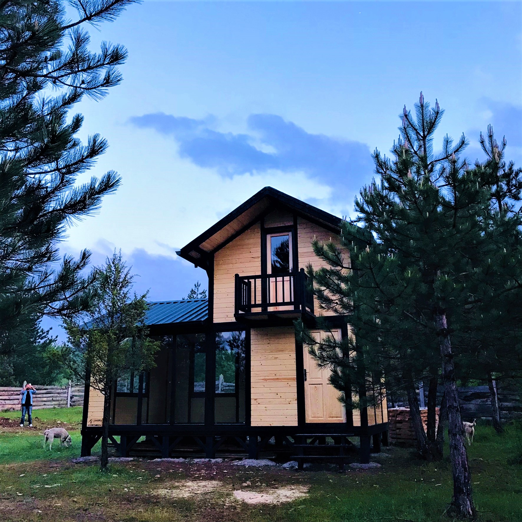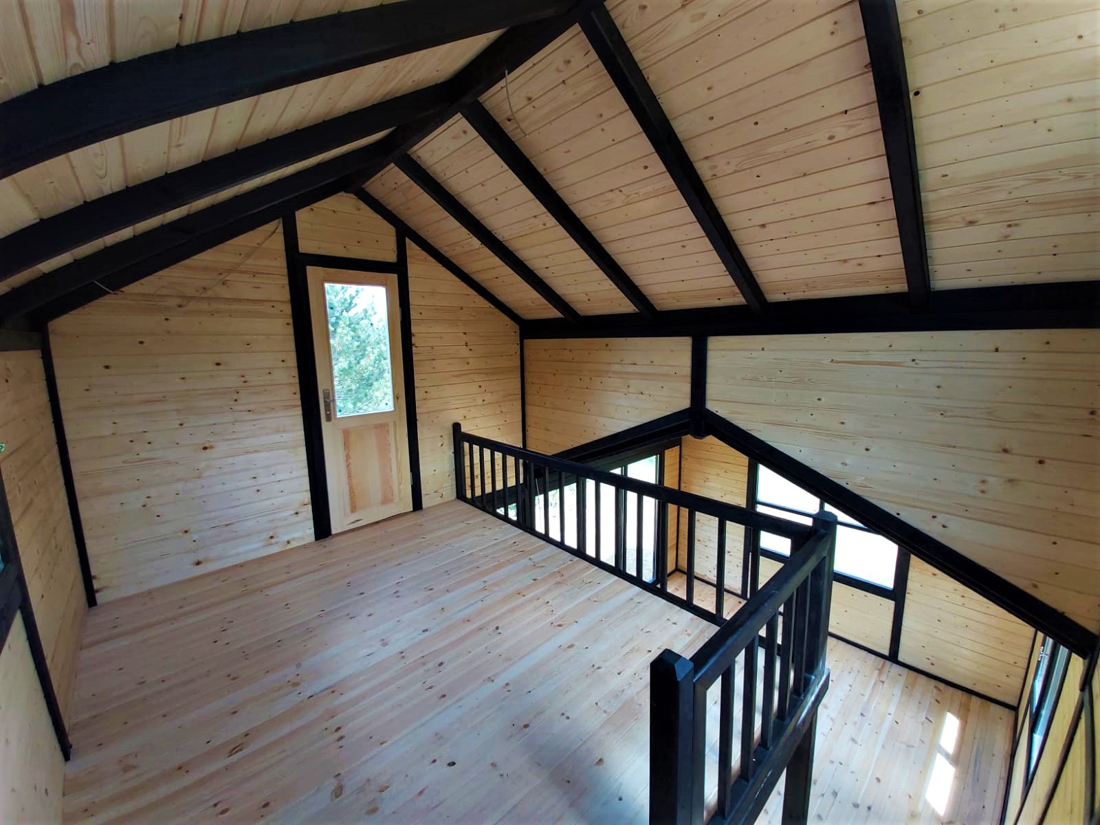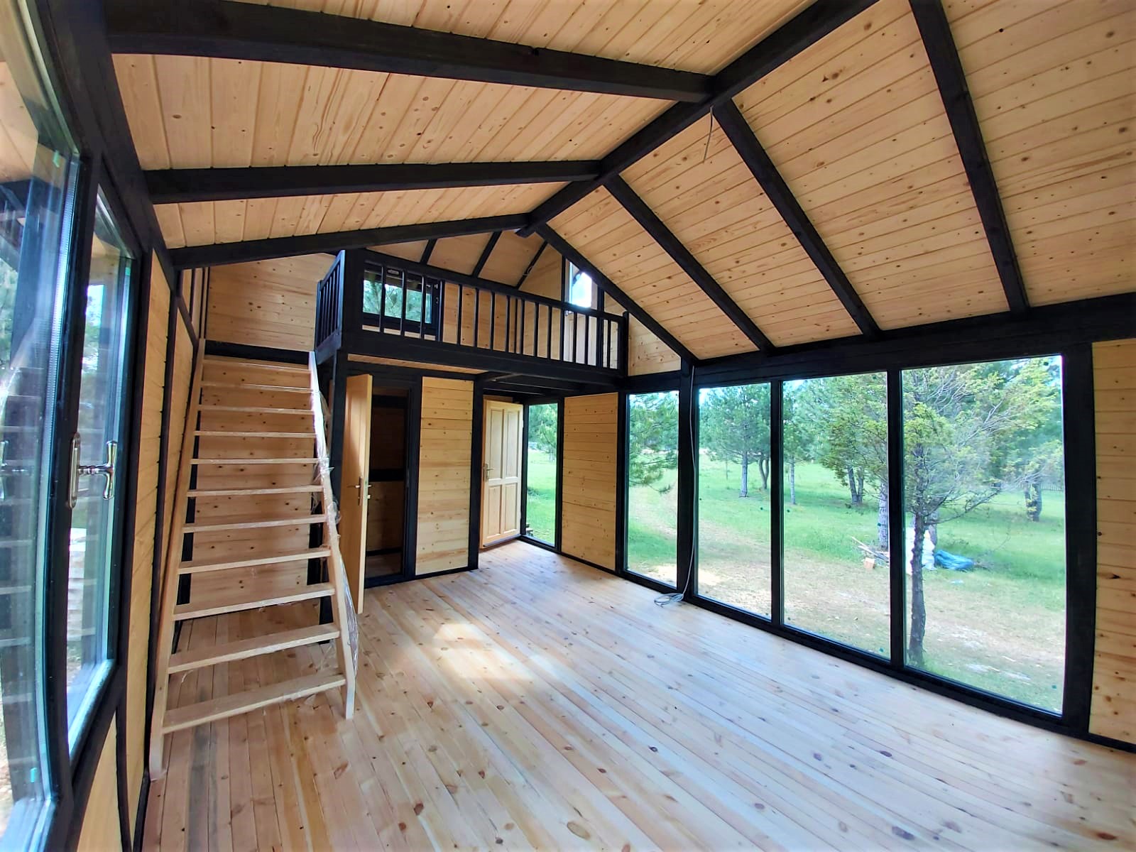36 m² Koza36 model evimizin taban alanı 26 m²,loft kat10 m² 1+1 salon,yatak odası,banyo ve açık mutfak bulunmaktadır.