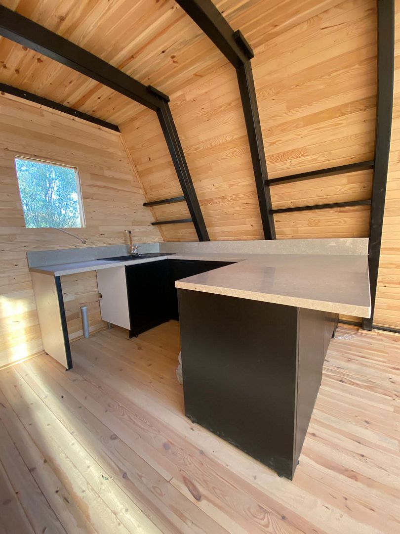 1 oda (Loft) 1 Salon (Amerikan Mutfak) 1 WC Banyo bulunmaktadır. Taban alanı 43m2, Loftu 17m2, Verandası 14m2 Toplamda 74m2 alanı bulmaktadır.